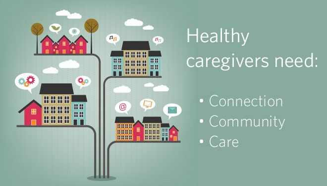 If you imagine a caregiver at the beginning of a care journey, he or she might be represented as a dot on the map of a neighbourhood. She would be surrounded by other dots – neighbours, friends and co-workers. Slowly, as care needs at home increase, the caregiver dot floats further and further away from all the other dots. One day, the caregiver finds herself alone, far from the community she once felt a part of.