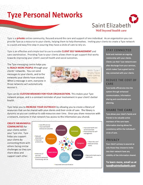 I’ve written a lot about how we use Tyze in my family. It’s a great tool and it’s even better if your closest circle of helpers is connected to your primary home care agency or disease-support association. Just write or pick up the phone to make this happen for you and other families sharing similar care challenges in your neck of the woods.